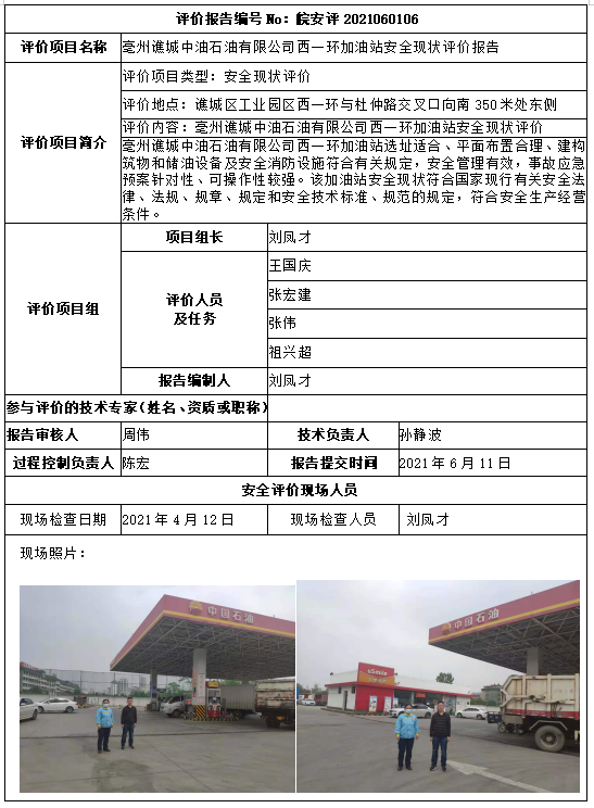 亳州譙城中油石油有限公司西一環(huán)加油站安全現(xiàn)狀評(píng)價(jià)報(bào)告