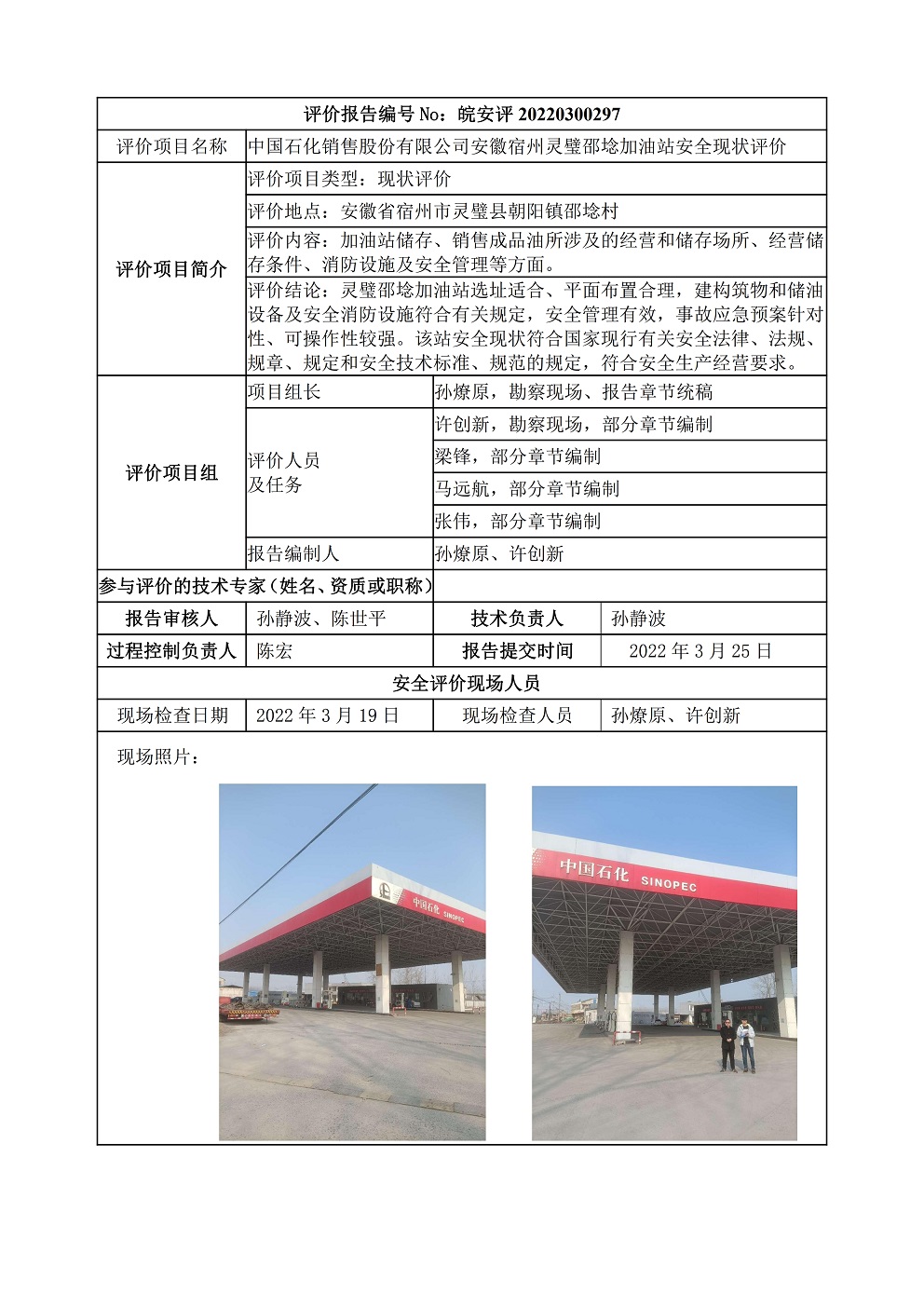 中國(guó)石化銷售股份有限公司安徽宿州靈璧邵埝加油站安全現(xiàn)狀評(píng)價(jià)