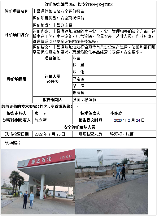 豐縣通達(dá)加油站安全評(píng)價(jià)報(bào)告