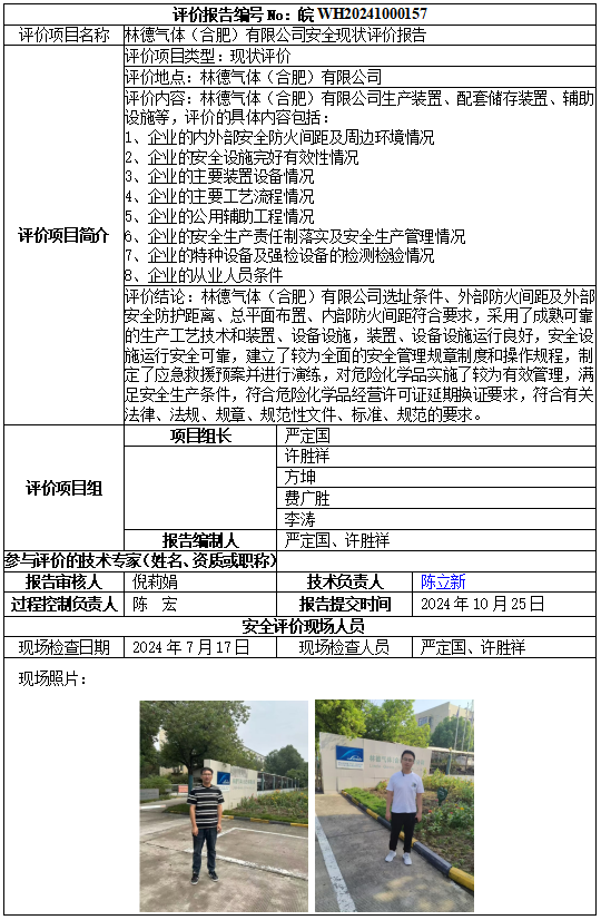 林德氣體(合肥)有限公司安全現(xiàn)狀評(píng)價(jià)報(bào)告
