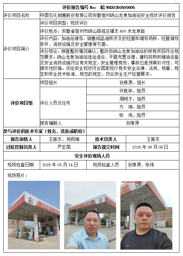 中國(guó)石化銷(xiāo)售股份有限公司安徽宿州碭山龍泉加油站安全現(xiàn)狀評(píng)價(jià)報(bào)告