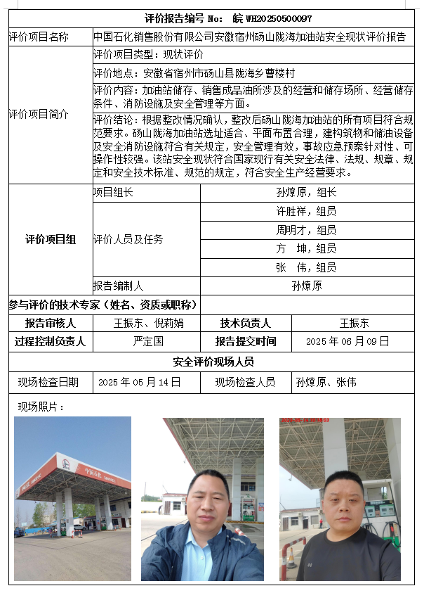 中國(guó)石化銷售股份有限公司安徽宿州碭山隴海加油站安全現(xiàn)狀評(píng)價(jià)報(bào)告