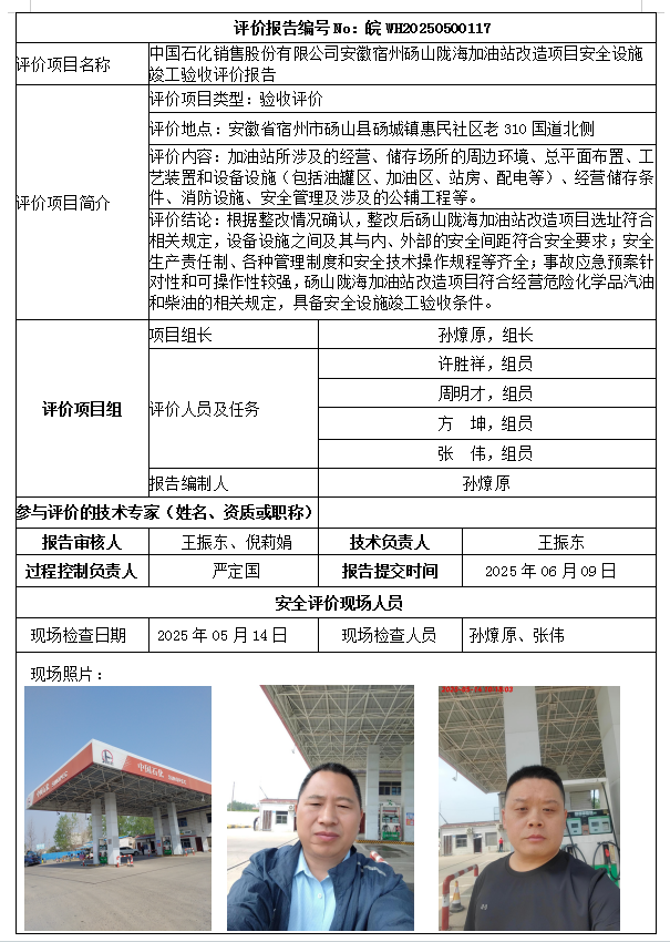 中國石化銷售股份有限公司安徽宿州碭山隴海加油站改造項目安全設施竣工驗收評價報告