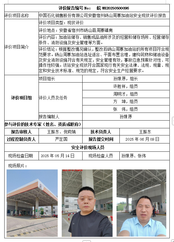 中國石化銷售股份有限公司安徽宿州碭山周寨加油站安全現(xiàn)狀評(píng)價(jià)報(bào)告