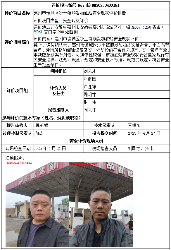 亳州市譙城區(qū)沙土鎮(zhèn)順發(fā)加油站安全現狀評價報告