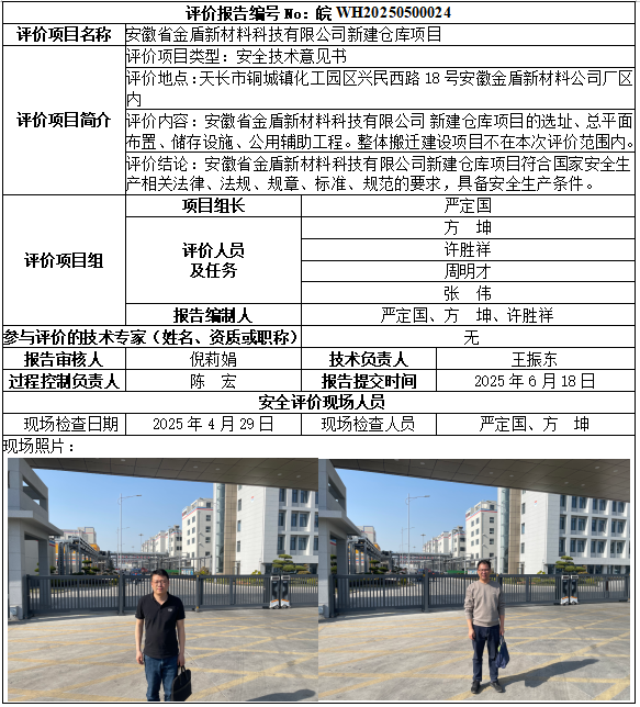 安徽省金盾新材料科技有限公司新建倉(cāng)庫(kù)項(xiàng)目安全技術(shù)意見(jiàn)書(shū)