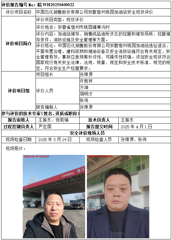 中國(guó)石化銷(xiāo)售股份有限公司安徽宿州桃園加油站安全現(xiàn)狀評(píng)價(jià)