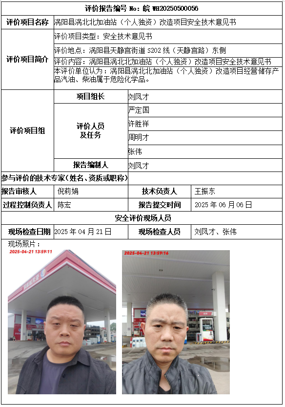 渦陽縣渦北北加油站(個人獨資)改造項目安全技術(shù)意見書