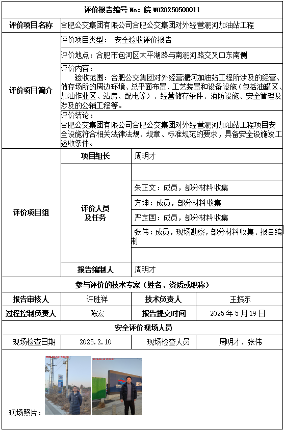 合肥公交集團(tuán)有限公司合肥公交集團(tuán)對外經(jīng)營淝河加油站工程安全驗(yàn)收評價報(bào)告