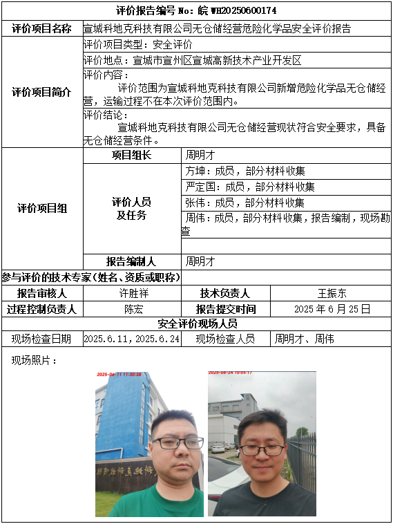 宣城科地克科技有限公司無倉儲經(jīng)營危險化學(xué)品安全評價報告