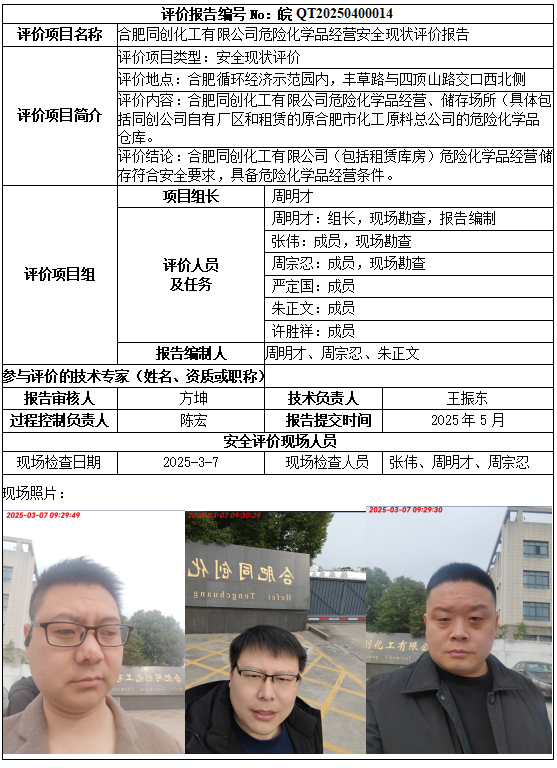合肥同創(chuàng)化工有限公司危險(xiǎn)化學(xué)品經(jīng)營安全現(xiàn)狀評(píng)價(jià)報(bào)告