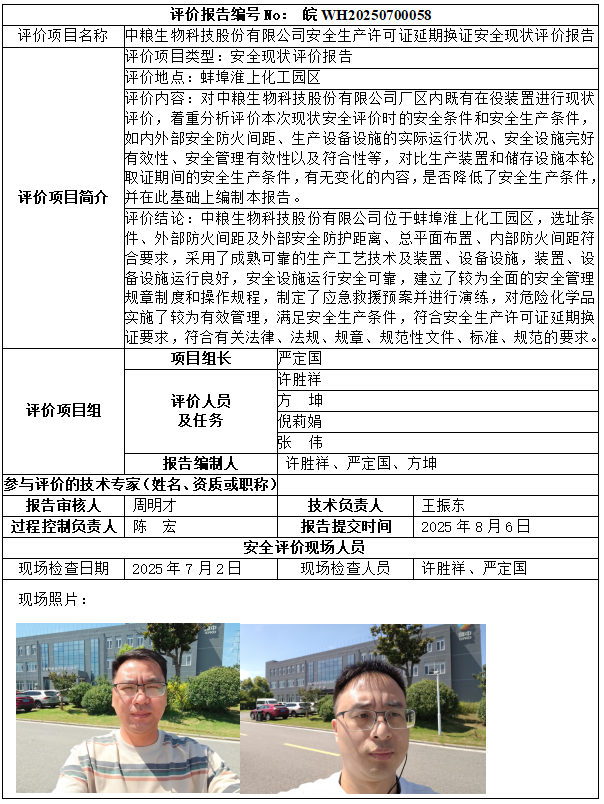 中糧生物科技股份有限公司安全生產(chǎn)許可證延期換證安全現(xiàn)狀評(píng)價(jià)報(bào)告