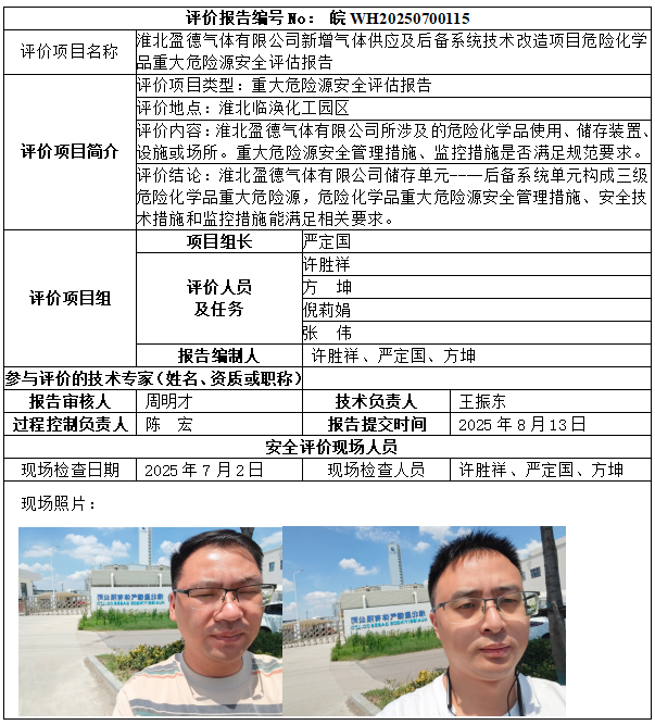 淮北盈德氣體有限公司新增氣體供應(yīng)及后備系統(tǒng)技術(shù)改造項(xiàng)目危險(xiǎn)化學(xué)品重大危險(xiǎn)源安全評估報(bào)告