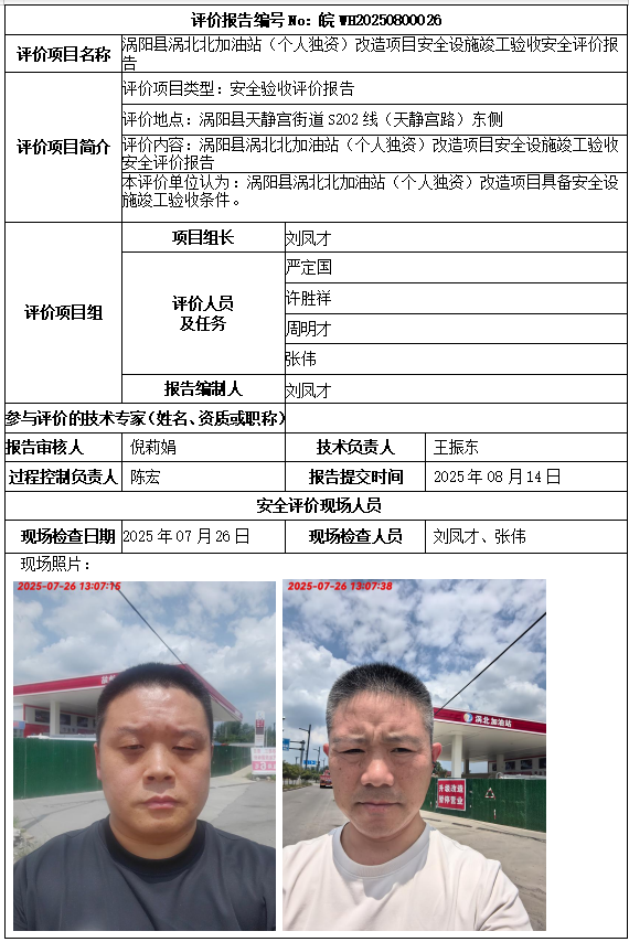 渦陽縣渦北北加油站(個人獨資)改造項目安全設(shè)施竣工驗收安全評價報告