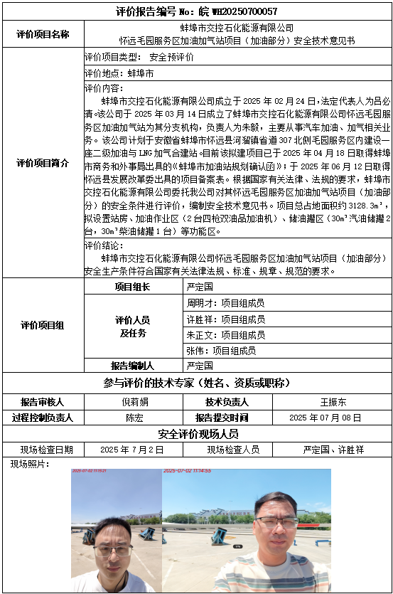 蚌埠市交控石化能源有限公司懷遠(yuǎn)毛園服務(wù)區(qū)加油加氣站項(xiàng)目(加油部分)安全技術(shù)意見(jiàn)書