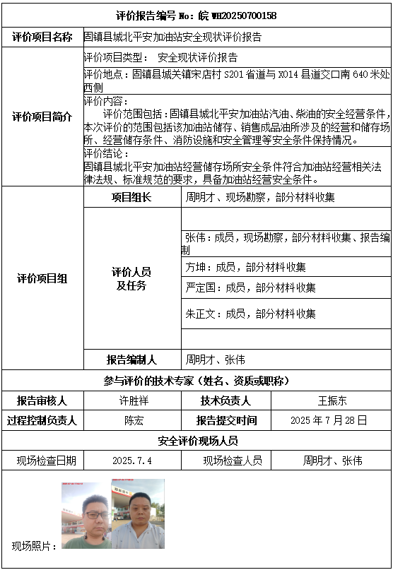 固鎮(zhèn)縣城北平安加油站安全現(xiàn)狀評價報(bào)告