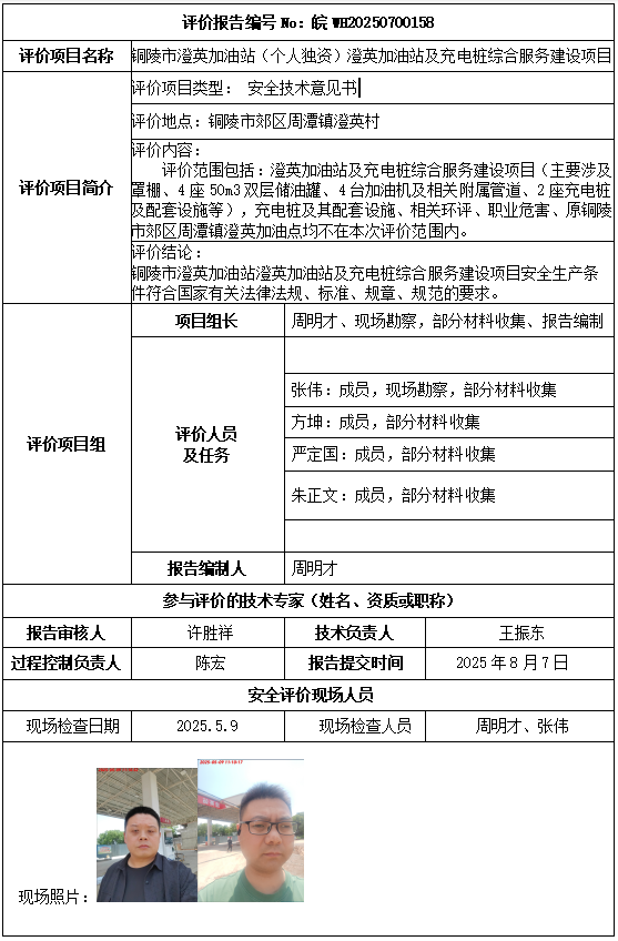 銅陵市澄英加油站(個(gè)人獨(dú)資)澄英加油站及充電樁綜合服務(wù)建設(shè)項(xiàng)目安全技術(shù)意見(jiàn)書(shū)