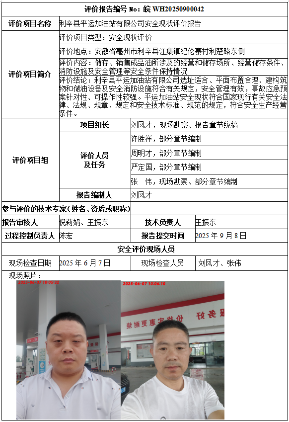 利辛縣平運(yùn)加油站有限公司安全現(xiàn)狀評(píng)價(jià)報(bào)告
