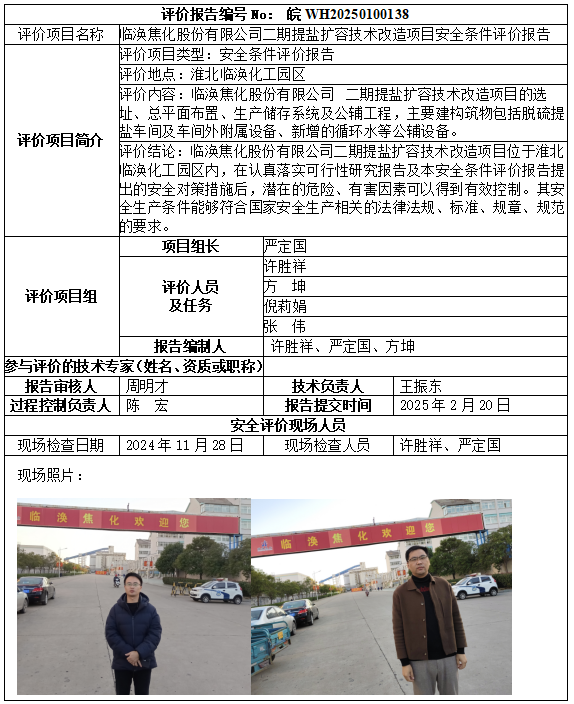 臨渙焦化股份有限公司二期提鹽擴容技術改造項目安全條件評價報告