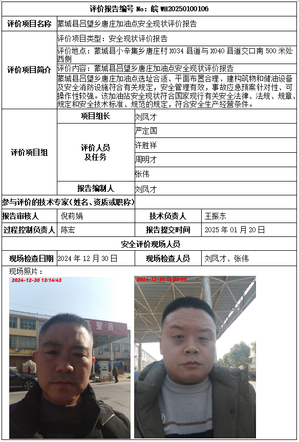 蒙城縣呂望鄉(xiāng)唐莊加油點(diǎn)安全現(xiàn)狀評(píng)價(jià)報(bào)告