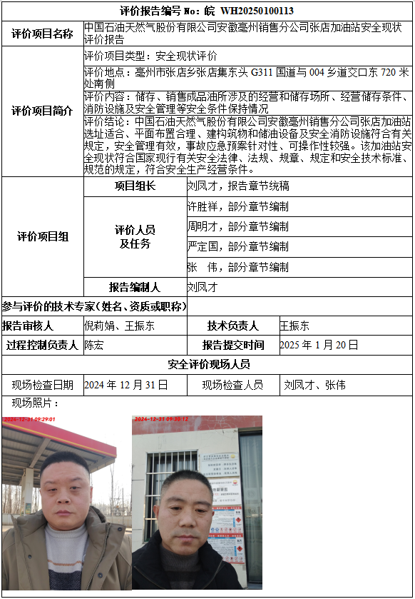 中國石油天然氣股份有限公司安徽亳州銷售分公司張店加油站安全現(xiàn)狀評(píng)價(jià)報(bào)告
