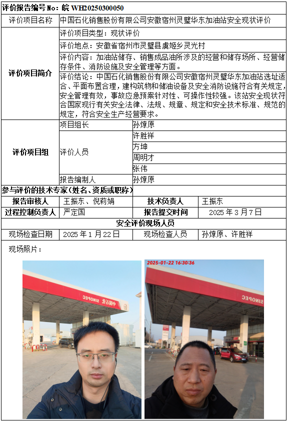 中國石化銷售股份有限公司安徽宿州靈璧華東加油站安全現(xiàn)狀評(píng)價(jià)