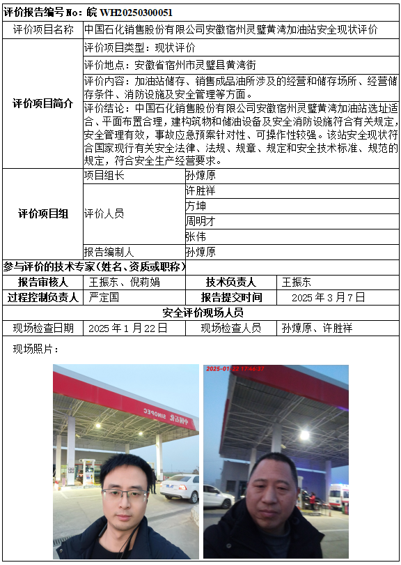 中國石化銷售股份有限公司安徽宿州靈璧黃灣加油站安全現(xiàn)狀評價(jià)