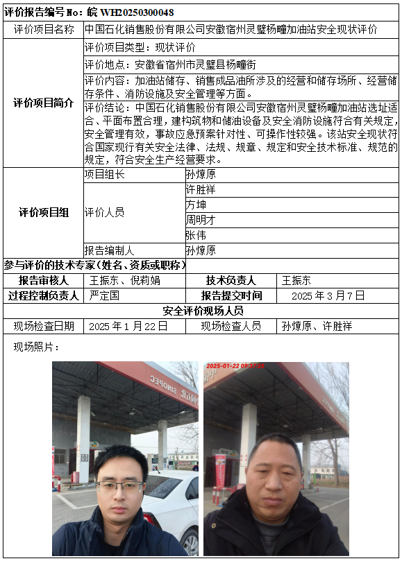 中國石化銷售股份有限公司安徽宿州靈璧楊疃加油站安全現(xiàn)狀評價