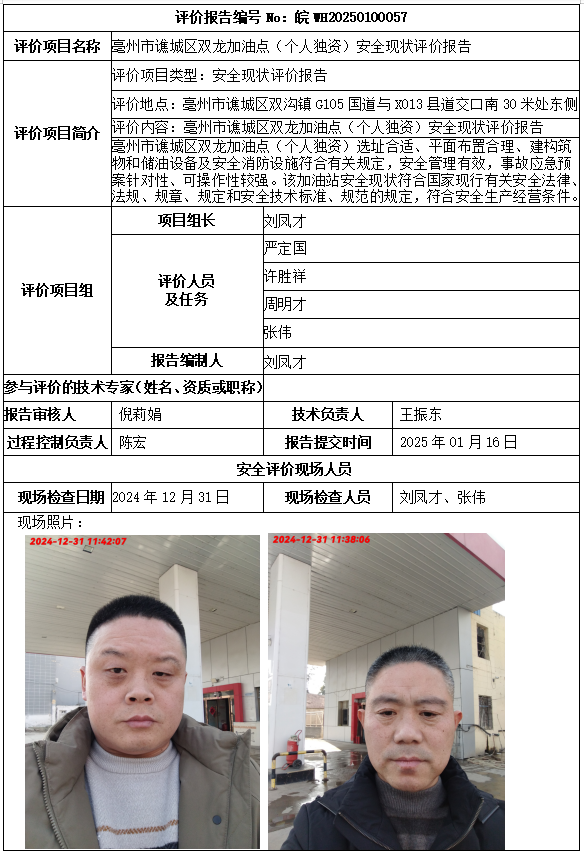 亳州市譙城區(qū)雙龍加油點(diǎn)(個(gè)人獨(dú)資)安全現(xiàn)狀評價(jià)報(bào)告