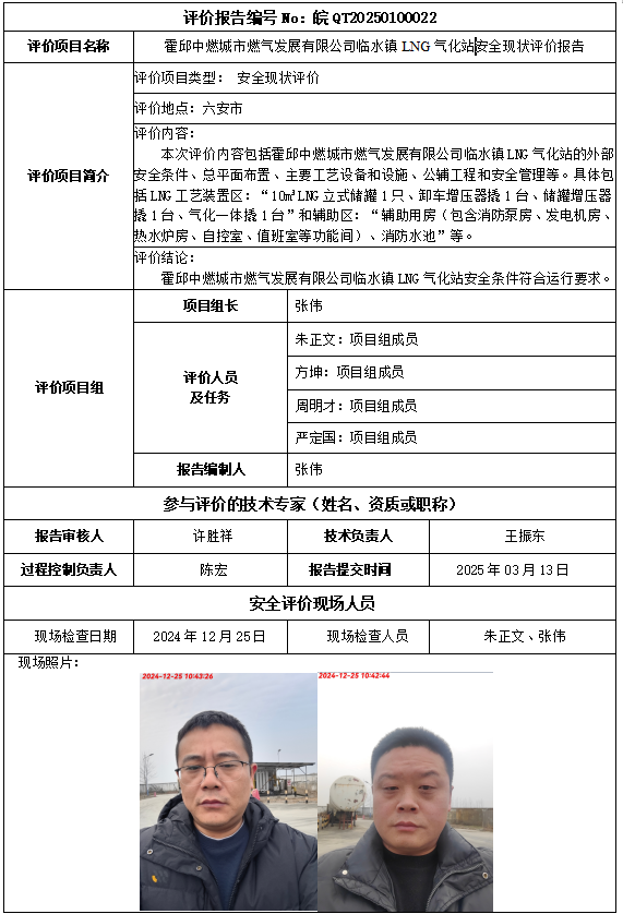霍邱中燃城市燃?xì)獍l(fā)展有限公司臨水鎮(zhèn)LNG氣化站安全現(xiàn)狀評(píng)價(jià)報(bào)告
