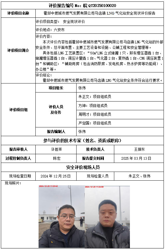 邱中燃城市燃氣發(fā)展有限公司馬店鎮(zhèn)LNG氣化站安全現(xiàn)狀評價報告