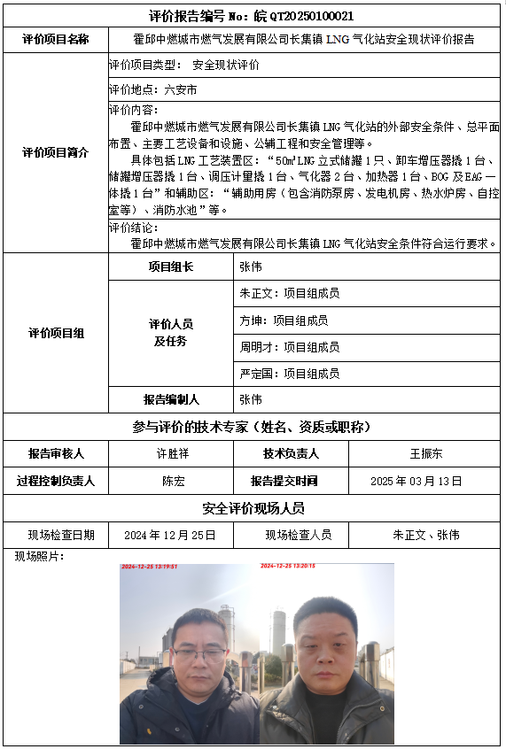 霍邱中燃城市燃氣發(fā)展有限公司長集鎮(zhèn)LNG氣化站安全現(xiàn)狀評價報告