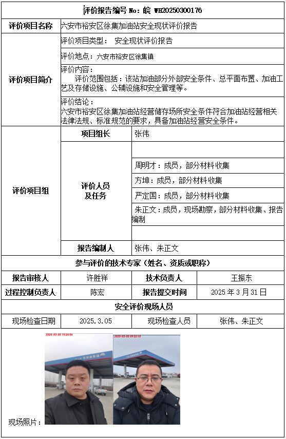 六安市裕安區(qū)徐集加油站安全現(xiàn)狀評(píng)價(jià)報(bào)告