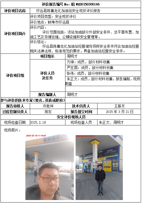懷遠(yuǎn)縣陳集龍化加油站安全現(xiàn)狀評(píng)價(jià)報(bào)告