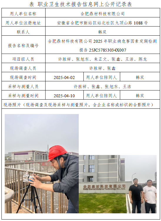 合肥鼎材科技有限公司2025年職業(yè)病危害因素定期檢測報告