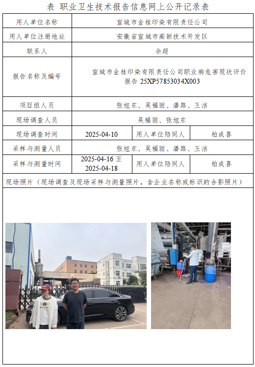 宣城市金桂印染有限責(zé)任公司職業(yè)病危害現(xiàn)狀評價報(bào)告