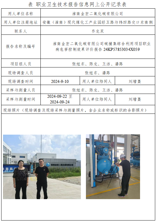 淮南金宏二氧化碳有限公司碳捕集綜合利用項目職業(yè)病危害控制效果評價報告