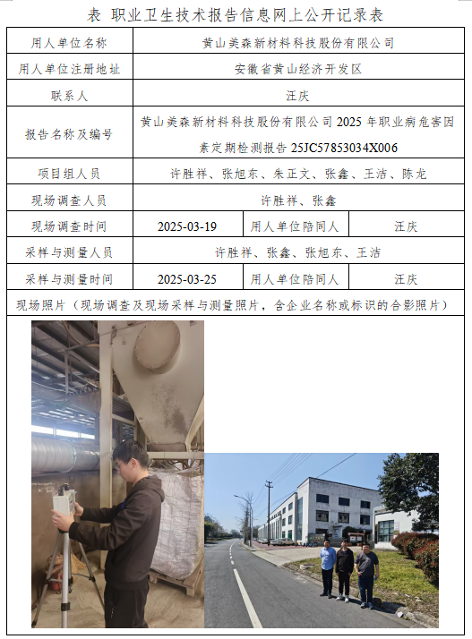 黃山美森新材料科技股份有限公司2025年職業(yè)病危害因素定期檢測(cè)報(bào)告