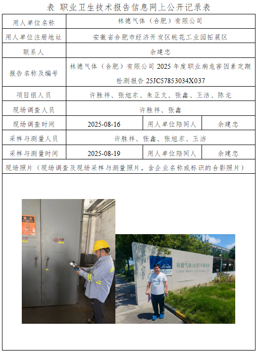 林德氣體(合肥)有限公司2025年度職業(yè)病危害因素定期檢測報(bào)告