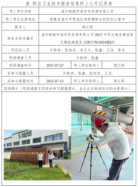 池州皖能環(huán)保有機(jī)資源有限公司2025年職業(yè)病危害因素定期檢測(cè)報(bào)告
