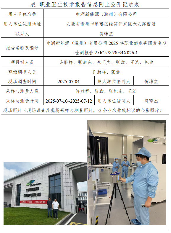 中潤新能源(滁州)有限公司2025年職業(yè)病危害因素定期檢測報(bào)告