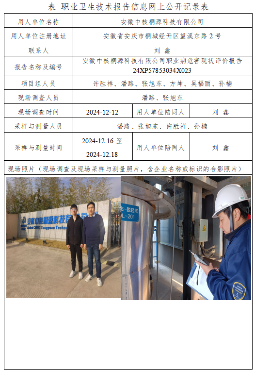 安徽中核桐源科技有限公司職業(yè)病危害現(xiàn)狀評(píng)價(jià)報(bào)告