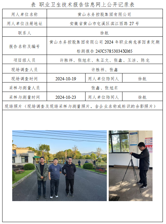 黃山水務(wù)控股集團(tuán)有限公司2024年職業(yè)病危害因素定期檢測報(bào)告