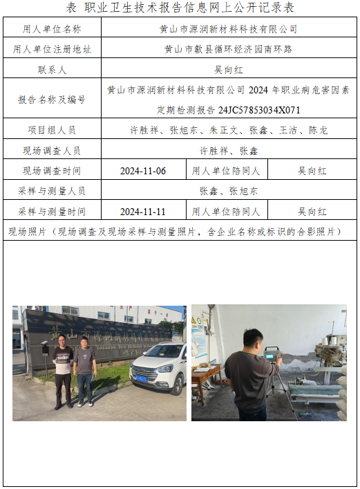 黃山市源潤新材料科技有限公司2024年職業(yè)病危害因素定期檢測(cè)報(bào)告
