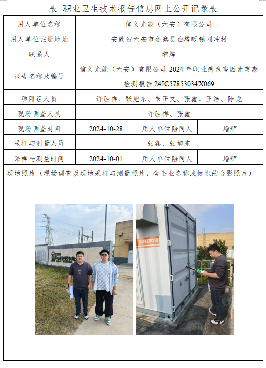 信義光能(六安)有限公司2024年職業(yè)病危害因素定期檢測報告